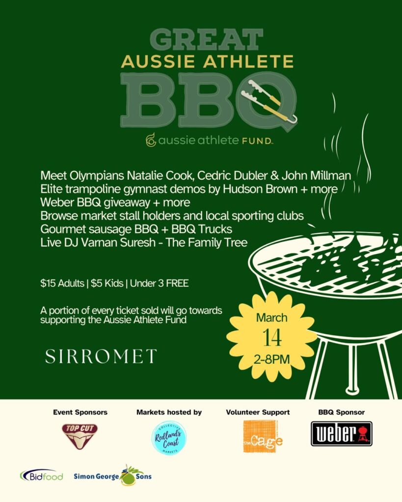 ⁠Fire up at the Great Aussie Athlete BBQ Festival! Hosted by five-time Olympian Natalie Cook OAM OLY, with guest appearances from two-time Olympian Cedric Dubler, tennis star, John Millman, plus Australia’s rising sporting stars, including elite trampoline gymnast, Hudson Brown.⁠